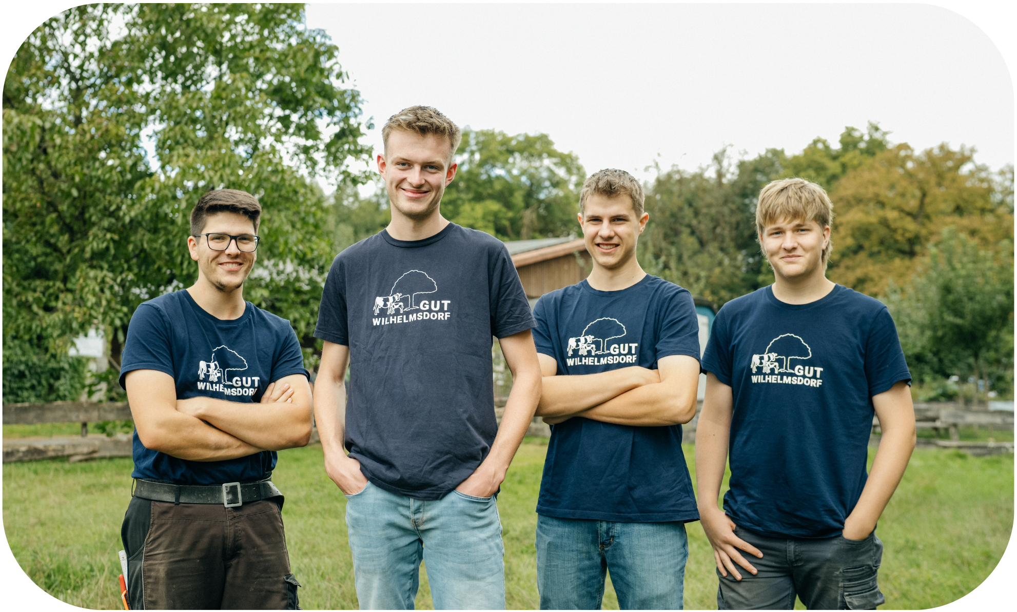 Seit 1995 bilden wir auf unserem Betrieb junge Menschen im Ausbildungsberuf Landwirt aus. Anfangs hatten wir jedes Jahr einen Lehrling, seit einigen Jahren sind es aufgrund der großen Nachfrage zwei geworden. Die Auszubildenden lernen ihren Beruf meist mit großem Enthusiasmus und bringen Impulse von außen. In Wilhelmsdorf liegt der Schwerpunkt der Ausbildung bei der ökologischen Milchviehhaltung, dem Ackerbau und der Grünlandwirtschaft. Auch die Pflege und Unterhaltung der Biogasanlage ist Bestandteil der täglichen Arbeitsroutine. Die vielfältige Organisation in einem Betrieb mit vielen Mitarbeitern in verschiedensten Bereichen bekommen die Auszubildenden in Wilhelmsdorf hautnah mit. Verantwortlich für die Ausbildung sind die beiden Betriebsleiterinnen Friederike Hegselmann und Maike Schumacher. Die praktische Ausbildung im täglichen Arbeitsablauf wird von Joachim Rehling übernommen. Der versierte Praktiker ist die beste Garantie für eine fundierte, praxisorientierte Ausbildung. Auch Praktikant:innen sind bei uns immer willkommen!