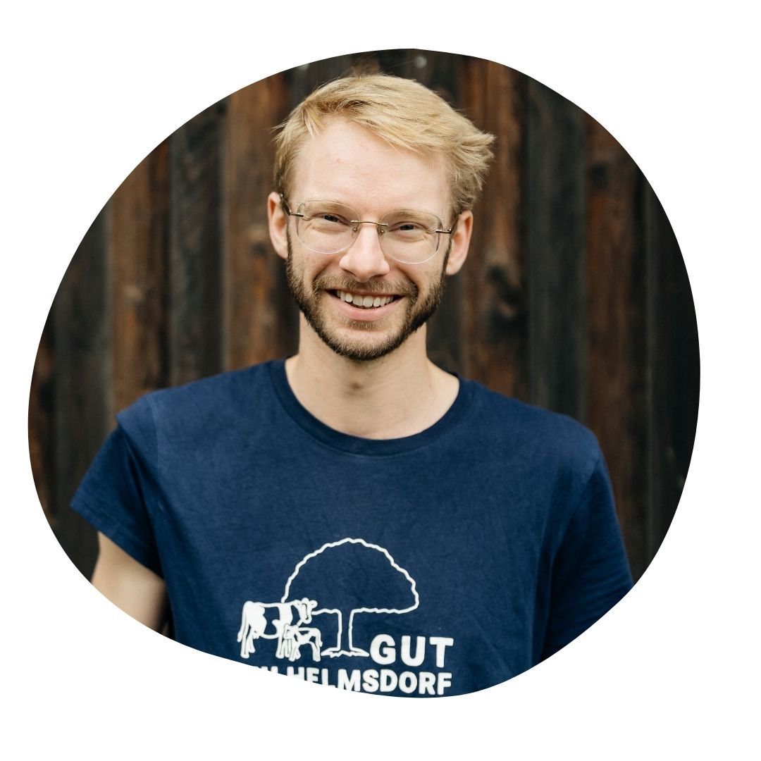 Jan, Jahrgang 1992, stammt ursprünglich von der Ostseeküste in Schleswig-Holstein. Nach zwei Jahren vielfältiger Tätigkeiten in der praktischen Landwirtschaft in Deutschland und Neuseeland, studierte er Agrarwissenschaften in Halle (Saale), in Wageningen in den Niederlanden und in Aarhus in Dänemark. Jan lebt mit seiner Familie seit 2020 auf dem Gut Wilhelmsdorf und ist als Geschäftsführer für die Bereiche Vermarktung und Molkerei verantwortlich. Seine große Leidenschaft sind die Bienen. Neben dem Studium arbeitete er drei Sommer in der Erwerbsimkerei und betreibt seit 2023 auf dem Gut seine eigene Imkerei.